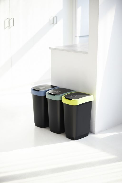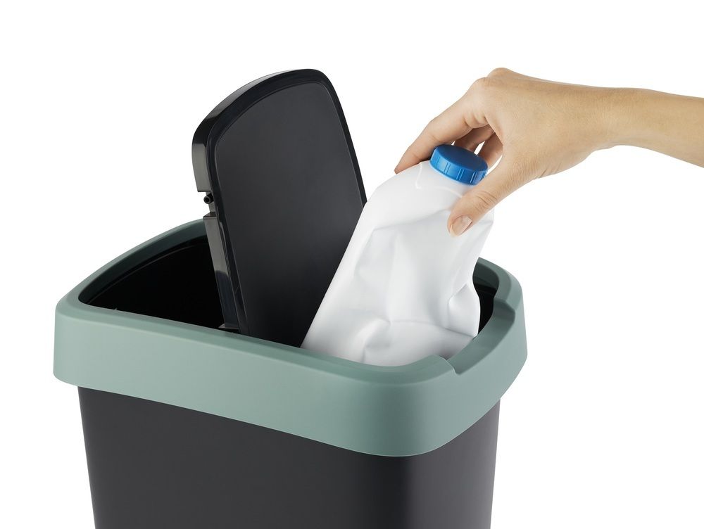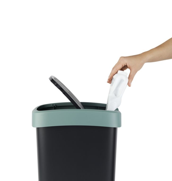 Plastový odpadkový kôš s odklápacím vekom. Dva spôsoby otvárania koša. Vysokokvalitný materiál a spracovanie od švajčiarskej značky Rotho.