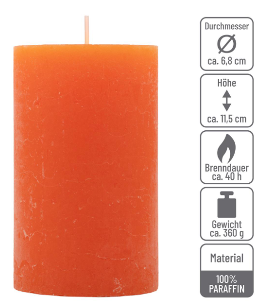 Vytvorte si príjemnú atmosféru pri každej príležitosti s touto sadou oranžových rustikálnych sviečok. Ich teplé svetlo rozžiari narodeniny, svadby aj rodinné večery a prinesie do vášho domova pocit pohody a útulnosti. Vďaka elegantnému dizajnu sa hodia do každého interiéru a potešia aj ako darček.