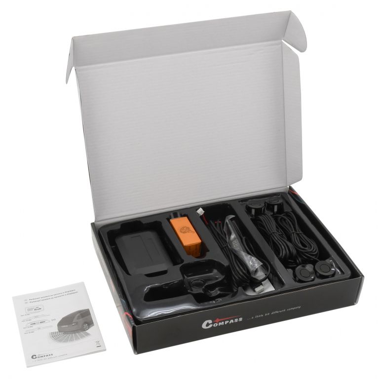 Balenie obsahuje: displej, riadiacu jednotku, 4 senzory pre montáž do zadného nárazníka, zodpovedajúcu kabeláž a vrták zodpovedajúceho priemeru.