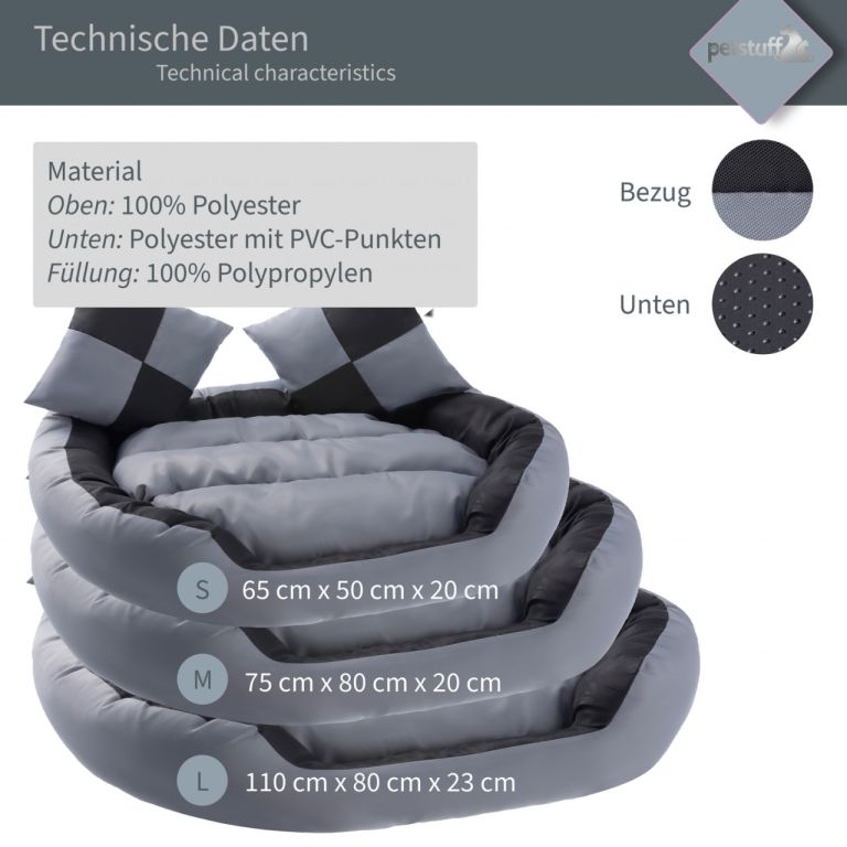 Tento pelech je príjemným miestom na spanie pre psa, mačku alebo iných domácich miláčikov. Náš pelech je vhodný aj ako doplnok k búde alebo prepravnému boxu. Je obzvlášť pohodlný vďaka mäkkej výplni a odnímateľnému obojstrannému vankúšu, ktorý je šetrný aj ku kĺbom štvornohého priateľa. Kryt je vodoodpudivý, aby sa zabránilo priamemu vniknutiu kvapalín. Celý pelech je možné prať ručne alebo v práčke pri nízkych teplotách. Spodná strana koša pre psov je vybavená ďalšími protišmykovými výstupkami.