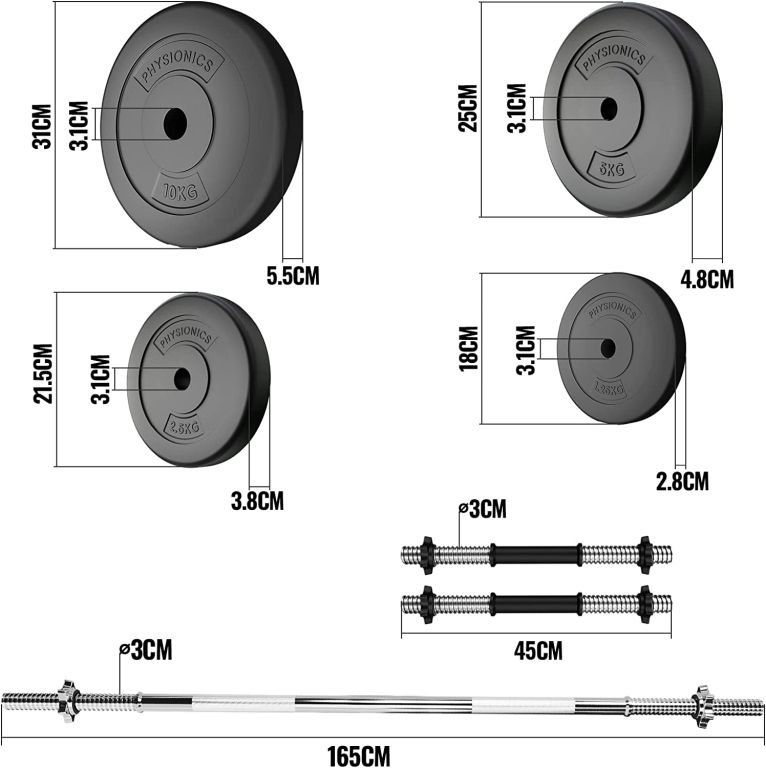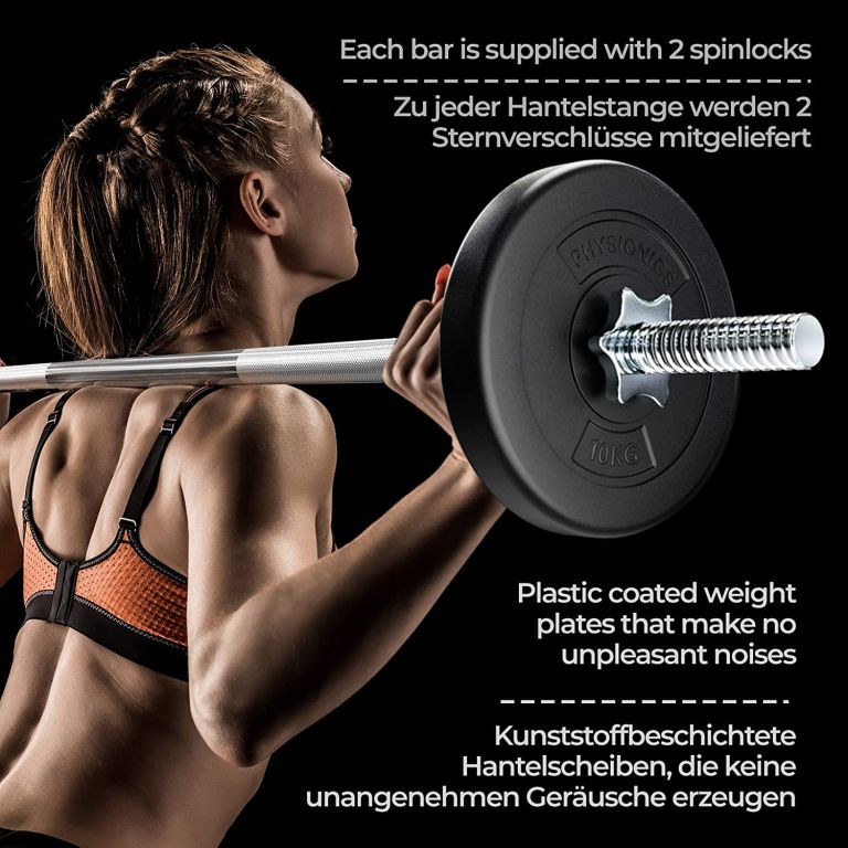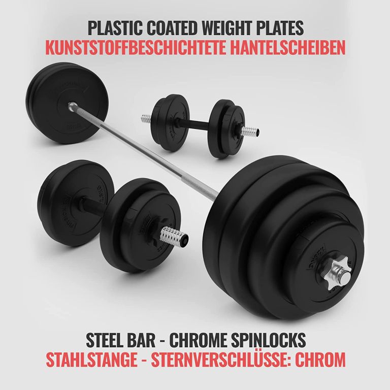 Krátke činky majú protišmykový povrch, ktorý zaistí, že vaše ruky nebudú kĺzať z tyče. Zohľadnite svoje osobné ciele a schopnosti a upravte túto sadu činiek podľa svojho tréningového plánu. Činkové kotúče sú vybavené odolným plastovým poťahom šetrným k podlahe, ktorý znižuje klepanie kovu.