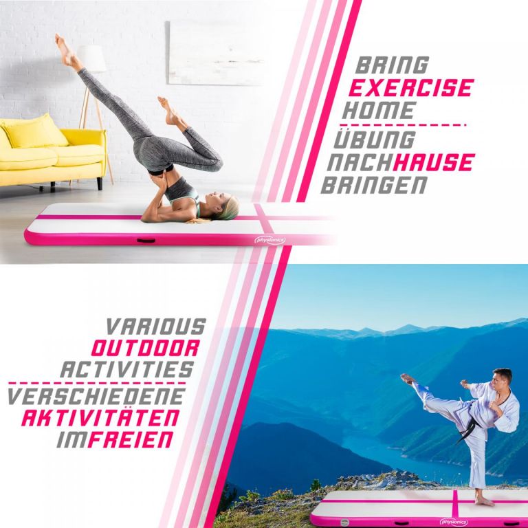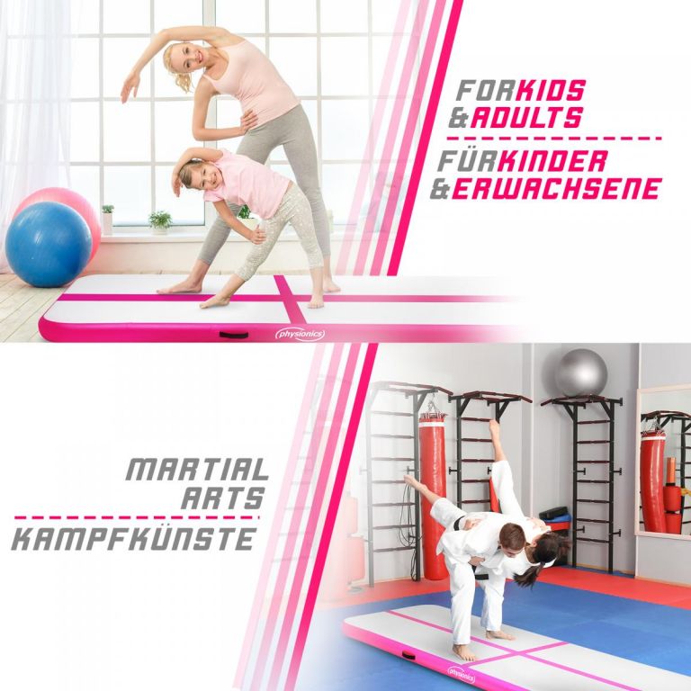 Physionics Airtrack nafukovacia žinenka, 8 m, ružová