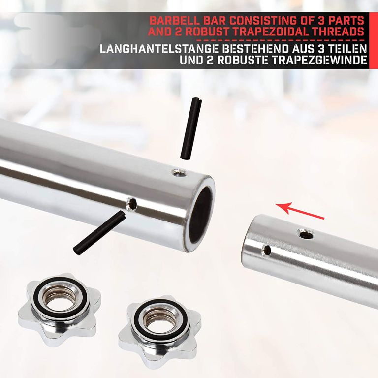 Tyč pre silový tréning umožňuje maximálne zaťaženie 300 kg kotúčov, ktoré sú pevne uzavreté hviezdicovými zámkami. Zdvíhacia tyč je vhodná pre všetky štandardné kotúče 30/31 mm. Dve 20 cm dlhé rukoväte na fitness tyči majú protišmykový povrch, ktorý zaisťuje, že Vám ruky z tyče neskĺznu.