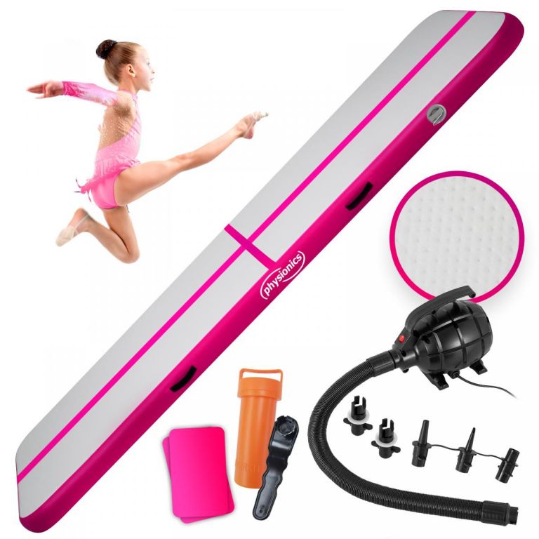 Naša gymnastická žinenka je 10 cm hrubá a je vyrobená z PVC plachty, dvojstenného materiálu, ktorého hlavnou vlastnosťou je udržať si tvar a stabilitu konštrukcie pri vonkajšom tlaku a nárazu. Tento komplet je vybavený elektrickou vzduchovou pumpou a opravnou sadou.