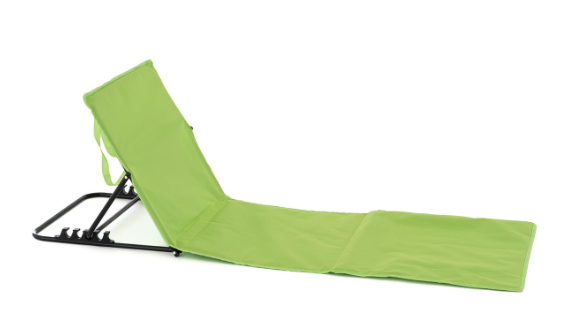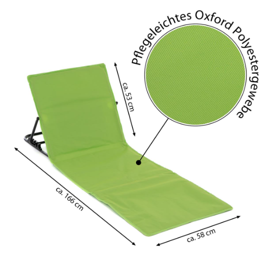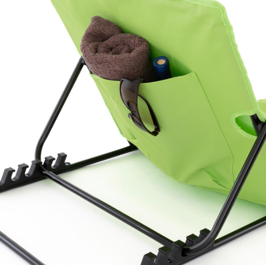 Vychutnajte si pohodlie na pláži alebo v záhrade – táto zelená polstrovaná podložka s nastaviteľným operadlom je skladateľná, ľahká a praktická.