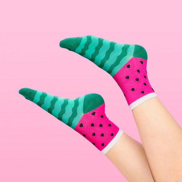 Vlákna organickej bavlny sú v týchto ponožkách obvláště k nEKOusnutí. Krabička z recyklovateľného materiálu skrýva poklad pre každého, komu záleží na udržateľnosti a zdraví nášho okolia a prírody. Motív vodného melónu s plátenými teniskami vyčaruje tú pravú letnú atmosféru. Melóny sú k dostaniu v jednej veľkosti, aby ste sa nehádali, kto má väčšie.