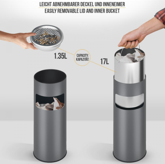 Chcete mať čisté a upratané okolie? Tento popolník s odpadkovým košom vám pomôže udržať poriadok a zároveň prispeje k ochrane životného prostredia. Elegantný antracitový vzhľad zapadne do každého priestoru a zaujme svojou jednoduchosťou.