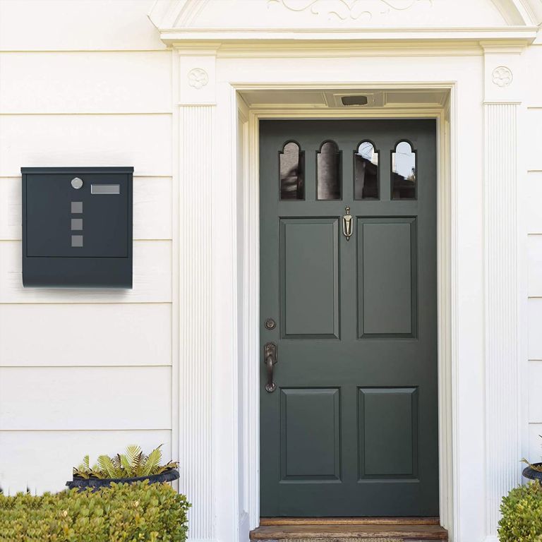 Elegantná poštová schránka SONGMICS v antracite ponúka bezpečné uzamykanie, držiak na noviny a jednoduchú inštaláciu na stenu.