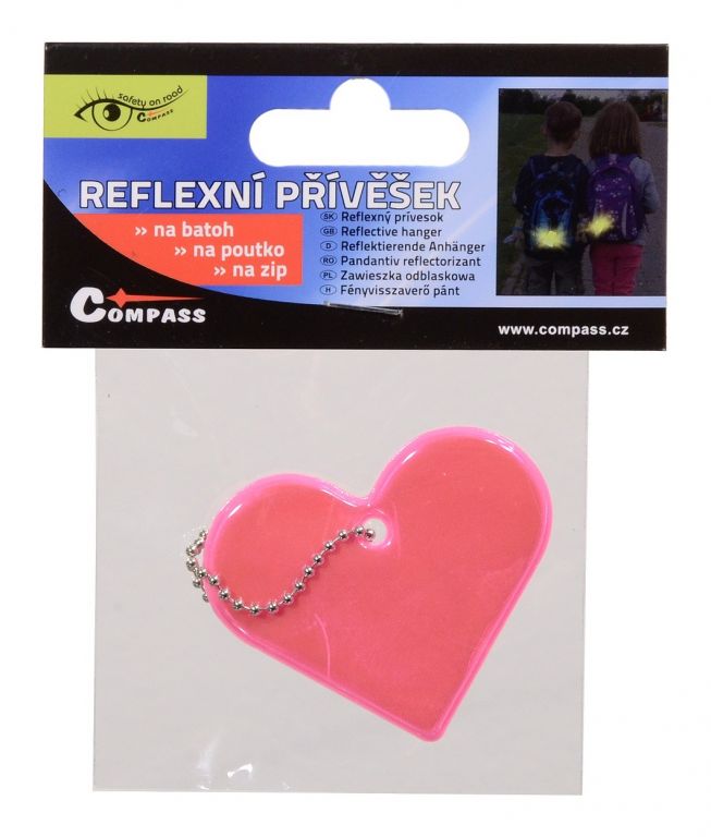 Reflexný prívesok s retiazkou, vhodný na upevnenie na odev, na školskú tašku, na batoh, na vrecko, na zips a pod. Na veľkú vzdialenosť dobre viditeľný doplnok, vhodné aj pre deti. Najmä za zníženej viditeľnosti či v šere niekoľkonásobne predlžuje vzdialenosť, na ktorú vodič spozoruje chodcov.