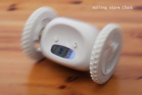 Kotúľajúci sa budík na úteku - pred tvojou neľútostnou rukou - kým ťa nezobudí!