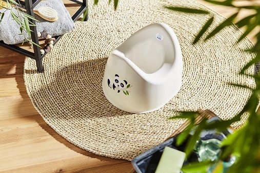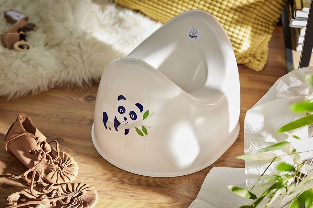 Nočník z bio materiálu. Organicky biela farba s potlačou pandy.