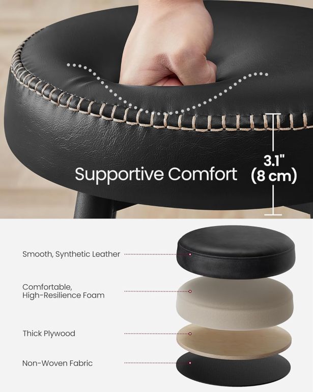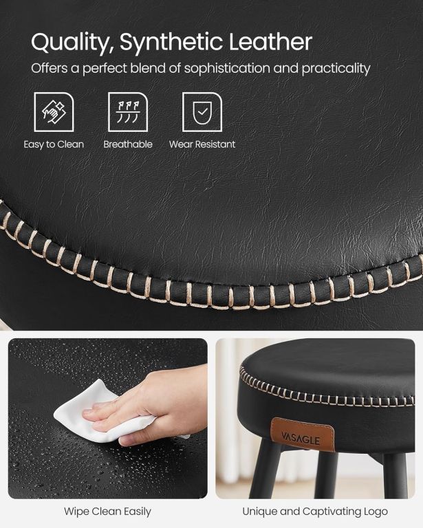 Stoličky sú vybavené odolným poťahom z PU kože a pevnými kovovými nohami s protišmykovými koncovkami. Silné polstrovanie zaisťuje komfort aj pri dlhšom sedení, zatiaľ čo ľahká údržba šetrí váš čas. Montáž je rýchla a jednoduchá vďaka priloženému návodu a sade príslušenstva.