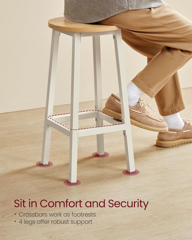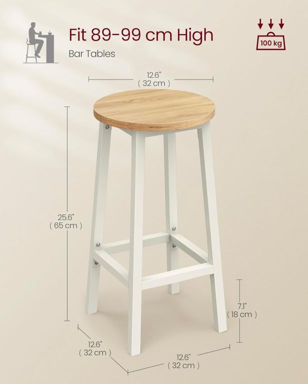 Dodajte svojej kuchyni či jedálenskému kútiku nadčasový štýl s týmito barovými stoličkami VASAGLE. Kombinácia bieleho kovového rámu a béžového sedadla v dekore bieleho duba pôsobí elegantne, prirodzene a ľahko zapadne do moderného aj klasického interiéru. Vďaka kompaktným rozmerom stoličky ľahko zasuniete pod barový stôl a ušetríte tak cenné miesto.
