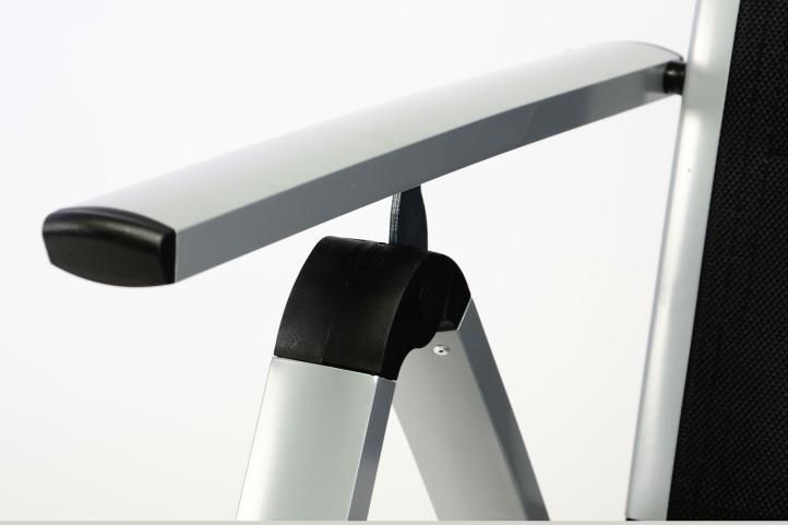 Luxusné hliníkové stoličky s polohovateľnou opierkou chrbta.
