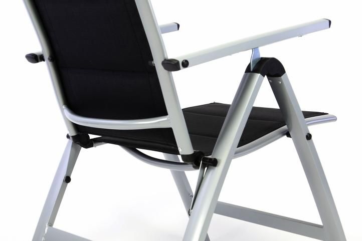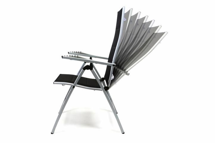 Luxusný sklápací stolík s príjemne vypolstrovaným operadlom chrbta a sedacou plochou prinesie komfort na Vašu terasu alebo ku stanu. Kovová polohovateľná koľajnica (7 rôznych polôh) a extra široké nohy zaručujú vysokú životnosť. Vysoko kvalitná textília (PVC potiahnutý polyester) je počasiu odolný a švy sú zvarené. Stolička zaručuje optimálnu ventiláciu sedadla a opierky chrbta. Vynikajúci komfort sedenia a ležania vďaka polstrovaniu, ktoré je počasiu odolné a nevyžaduje špeciálnu údržbu. Stolička je vhodná na terasu, záhradu, balkón, kúpalisko alebo pri kempovaní.