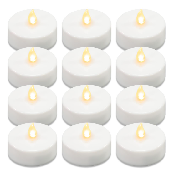 Sada čajových sviečok na batérie, s časovačom, biele, 12 ks