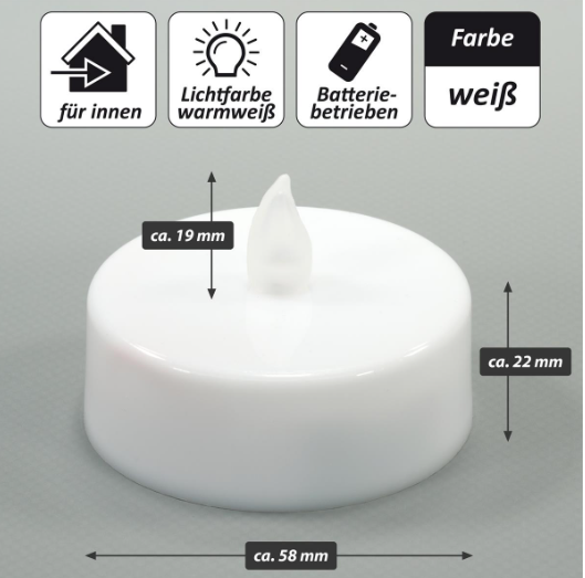 Vďaka batérii ste nezávislí na zásuvkách. Pomocou funkcie časovača si môžete nastaviť dobu svietenia podľa vášho priania (6 hodín zapnuté / 18 hodín vypnuté). Pretože sa tieto bezplamenné čajové sviečky nezahrievajú, je možné ich pokojne používať v blízkosti látok alebo v detskej izbe a nepredstavujú nebezpečenstvo požiaru. Ideálna pre príjemné chvíle v obývacej izbe alebo pre útulnú atmosféru v reštaurácii a kaviarni. Všimnite si aj naše ďalšie svietidlá, ako sú rozprávkové svetlá, skutočné voskové sviečky, osvetlenie vianočných stromčekov a naše vianočné dekorácie.