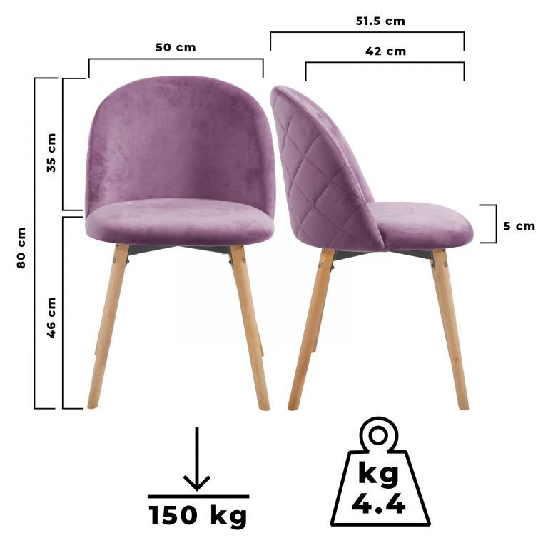 Sada jedálenských zamatových stoličiek, fialové, 2 ks