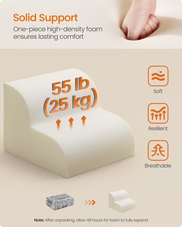 Stabilná konštrukcia z hustej peny zaručuje dlhú životnosť a bezpečnosť pri každom kroku. Protiskluzový povrch z manšestru a gumové bodky na spodnej strane zabraňujú pošmyknutiu. Vodoodolný poťah sa dá ľahko odstrániť a prať v práčke. Nie je potrebná žiadna montáž, stačí rozbaliť a nechať penu expandovať.