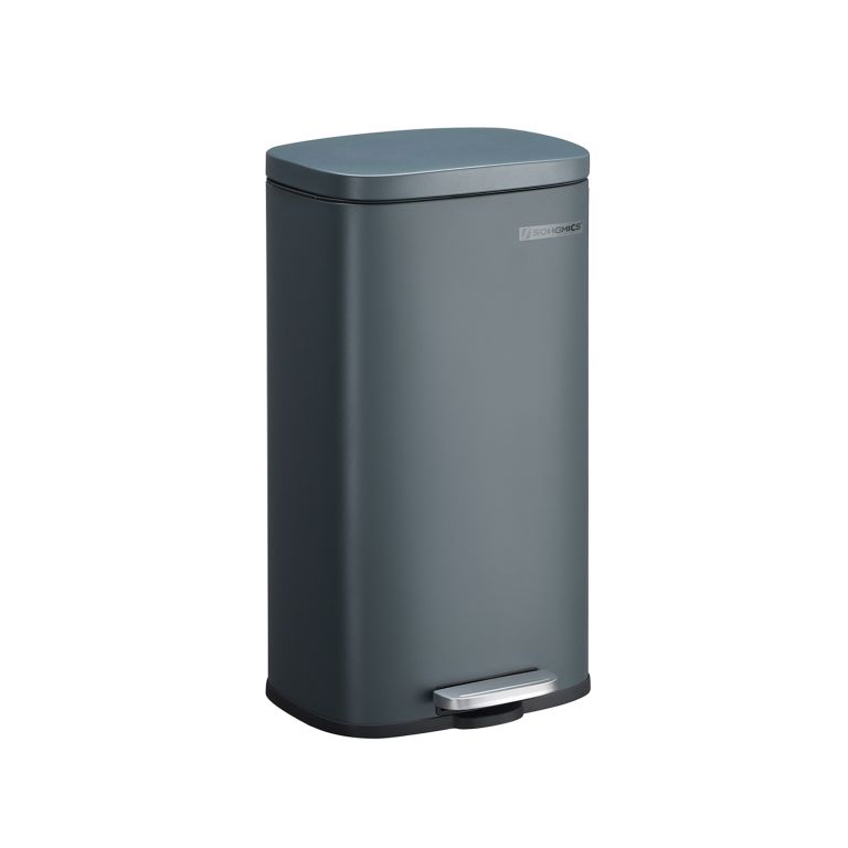 Praktický šedý kôš 30 l s tichým zatváraním, pedálom a vyberateľnou nádobou.