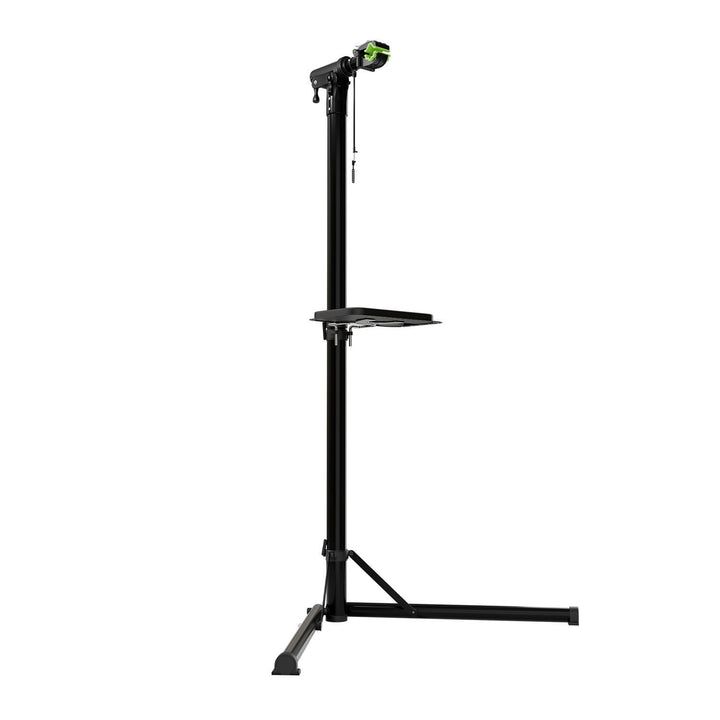 Tento praktický skladací servisný stojan na bicykle uľahčuje všetky opravy a údržbu. Vďaka výškovo nastaviteľnej konštrukcii, otočným čeľustiam o 360° a gumovému povrchu je práca pohodlná, bezpečná a mimoriadne šetrná k rámu. Magnetický odkladací povrch udrží všetko, čo potrebujete, po ruke, a systém rýchleho uvoľnenia zaručuje bezpečné uchytenie za pár sekúnd.