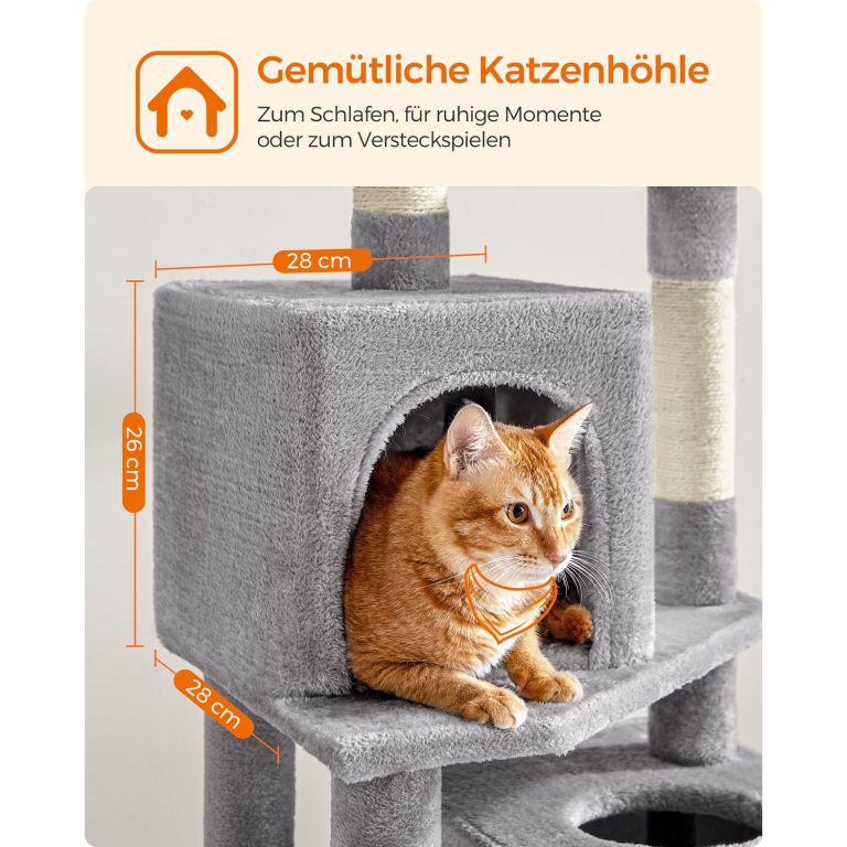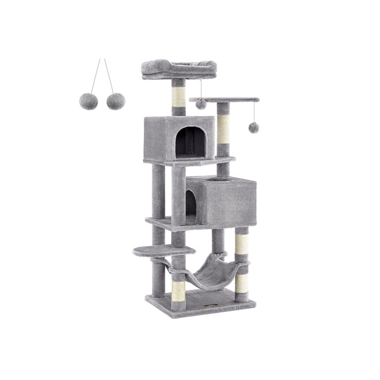 Doprajte svojej mačke luxusný priestor na hranie, škrabanie a oddych. Tento vysoký škrabací stĺpik v elegantnej svetlosivej farbe ponúka útulné postele, visiacu hojdačku a zábavné loptičky, ktoré potešia každú mačku a spríjemnia váš domov.