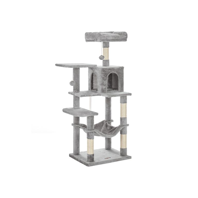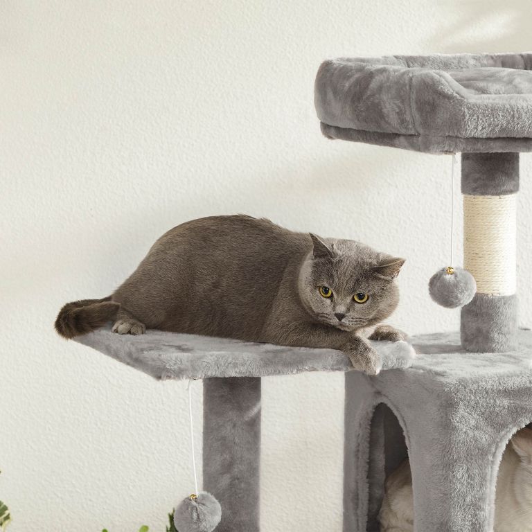 Doprajte svojej mačke vlastný raj plný dobrodružstiev a relaxu! Tento elegantný škrabací stromček v jemnej svetlosivej farbe premení každý interiér na útulné útočisko. Vaša mačka si zamiluje priestranný domček, mäkkú hojdačku a škrabadlá, ktoré podporia jej prirodzené inštinkty a poskytnú jej bezpečné miesto na hranie a relax.