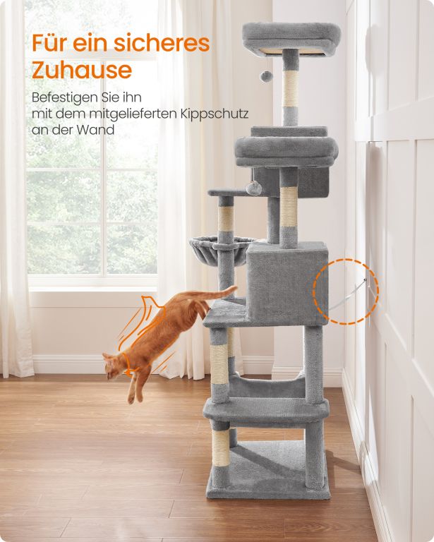 Vytvorte svojmu domácemu maznáčikovi raj priamo doma. Tento stromček pre mačky ponúka všetko, čo mačka potrebuje – lezenie, odpočinok a bezpečné úkryty. Mäkké postele a priestranná hojdačka sú ideálne na leňošenie, zatiaľ čo škrabadlá chránia váš nábytok.