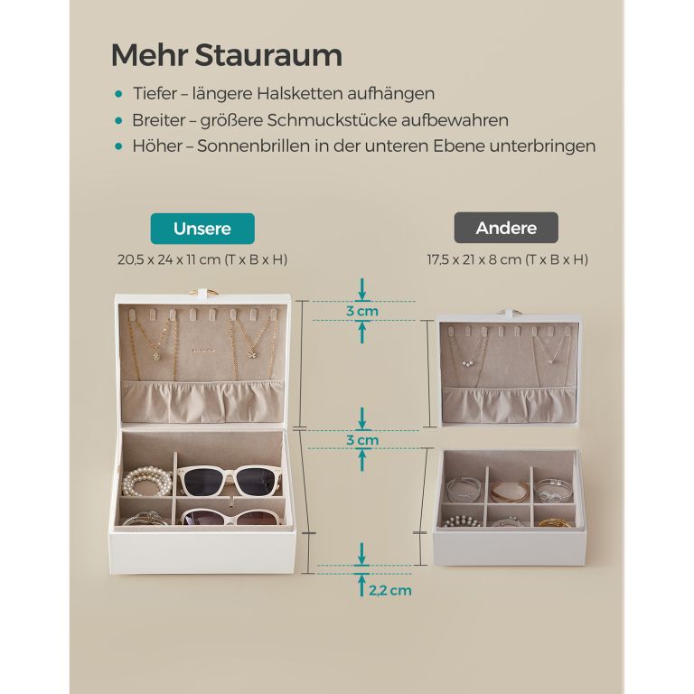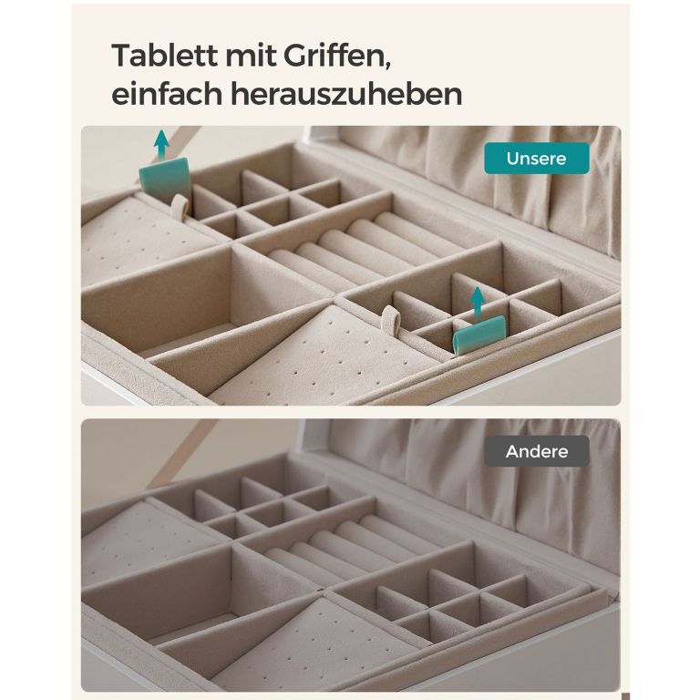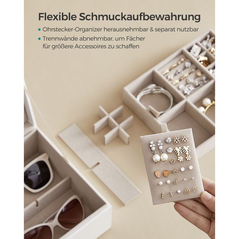 SONGMICS šperkovnica s priehradkami a úchytom, 2poschodový
