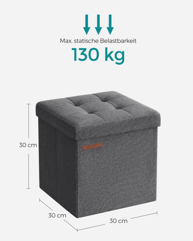 Elegantný taburet SONGMICS s úložným priestorom, nosnosťou 130 kg a rozmermi 30×30 cm. Praktický, štýlový a skladací.