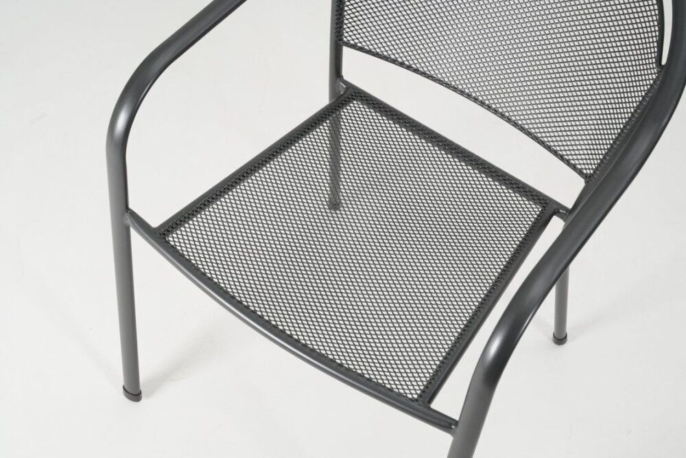 Kreslo je vyrobené z kvalitného kovu – tahokovu, ktorý je povrchovo upravený pre maximálnu odolnosť voči poveternostným vplyvom. Vďaka nízkej hmotnosti a možnosti stohovania je ideálne aj pre menšie priestory. Nosnosť až 120 kg zaručuje bezpečné použitie.