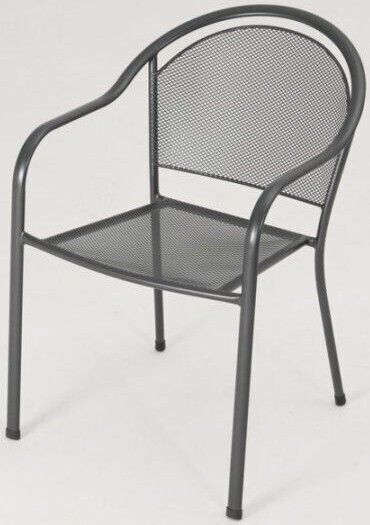Zobraziť podrobnejší popisPraktické kovové kreslo s mriežkovaným dizajnom, vhodné na každú záhradu či terasu.