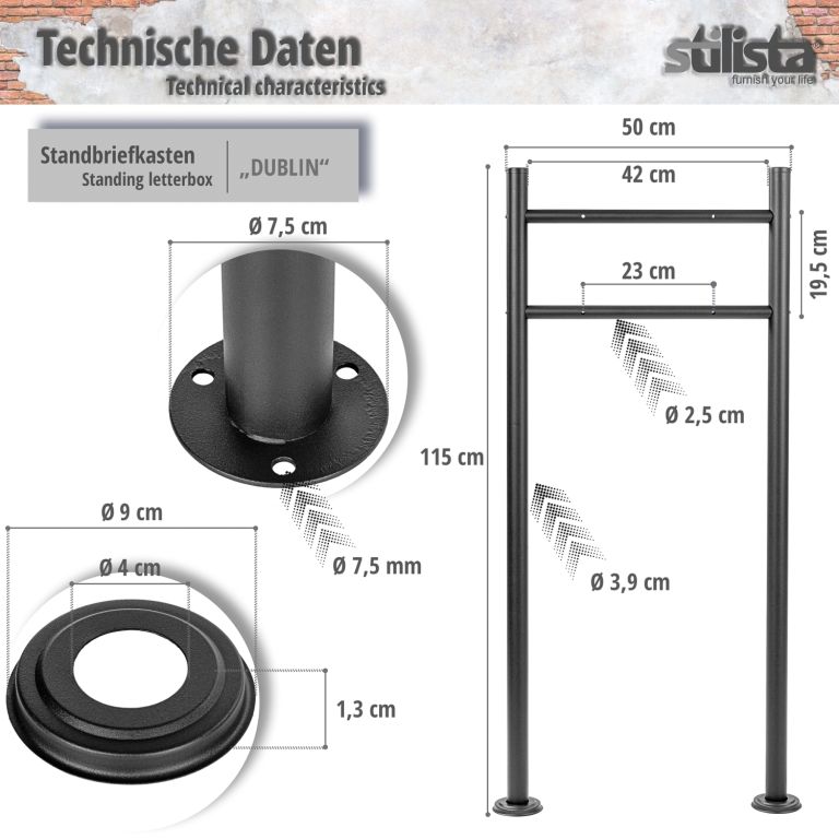 Stojaca poštová schránka Dublin, antracit, dve nohy
