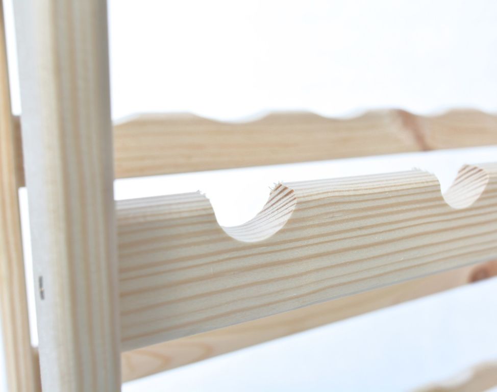Regál je vybavený 8 policami na víno. Každá polica je prispôsobená na 7 fliaš vína. Regál teda pojme až 57 fliaš vína, napriek tomu sa svojimi rozmermi vojde do špajze aj iného malého priestoru. Prírodné prevedenie umožňuje regál natrieť a ošetriť podľa vlastnej predstavy. Certifikát FSC zaručuje, že použité drevo pochádza zo šetrne obhospodarovaných lesov, v ktorých sú dodržiavané prísne ekologické a sociálne požiadavky.