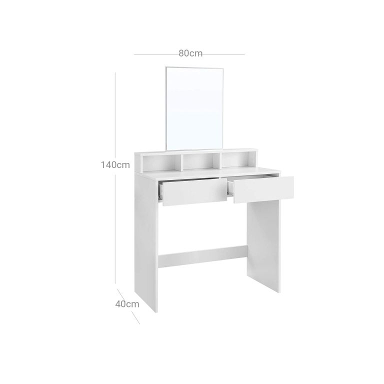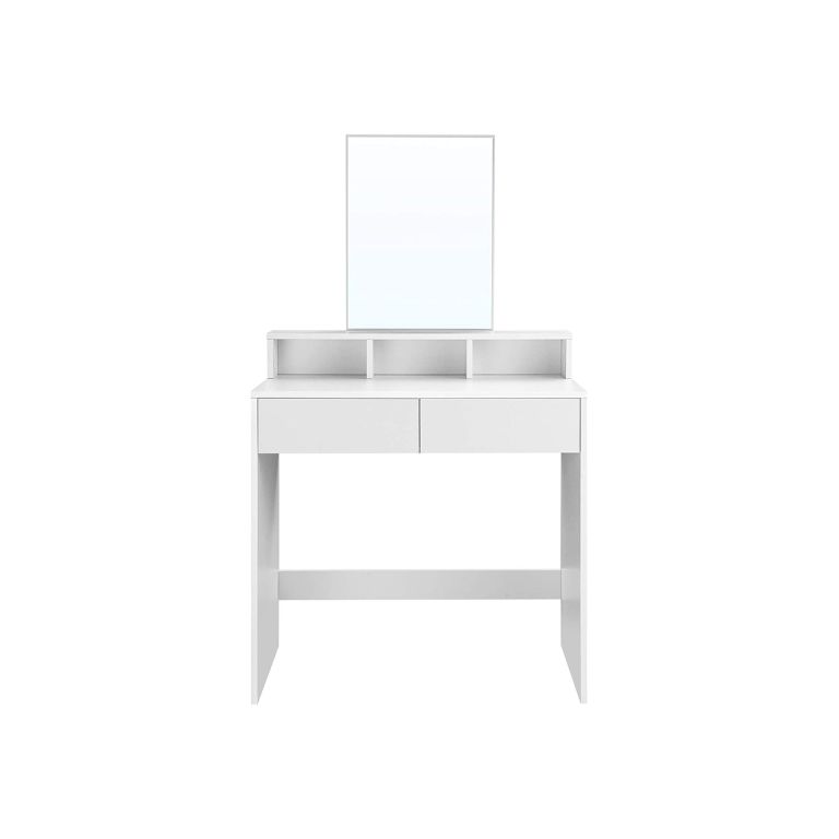 Elegantný toaletný stolík VASAGLE so zrkadlom, 2 zásuvkami a priehradkami. Moderný dizajn v bielej farbe dodá spálni štýl.