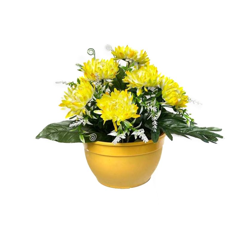 Umelá chryzantéma v kvetináči, žltá, 30 cm