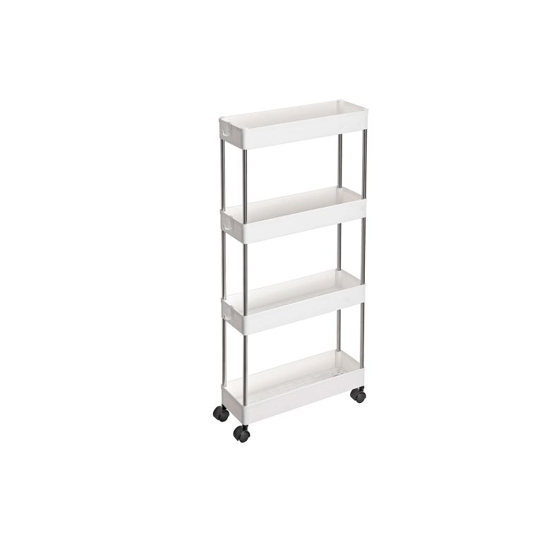 Úložný vozík na kolieskach, ideálny do úzkych priestorov v kuchyni, kúpeľni či práčovni.