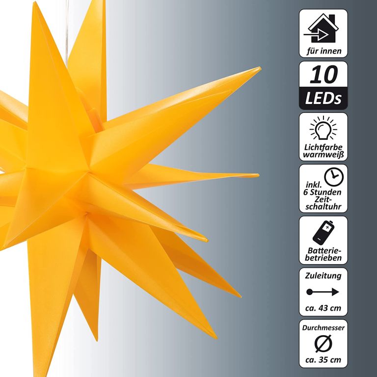Vianočná hviezda z vysoko kvalitného PVC rozsvieti nielen Vaše okná, ale aj celý domov. Možno ju voľne zavesiť do priestoru. Vďaka napájaniu na batérie nebudete závislý na prístupe k zásuvke. Skrášlite si svoju domácnosť touto tradičnou dekoráciou v modernom prevedení.