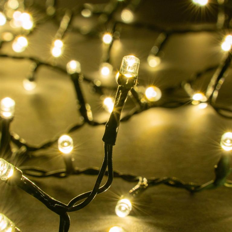Vysoko kvalitná vianočná LED reťaz svieti krásnym teplým bielym svetlom. Bohatstvo svetelného zväzkového reťazca priťahuje na Vašu adventnú výzdobu všetku pozornosť, či už vo vonkajšom prostredí alebo vo vnútorných priestoroch.