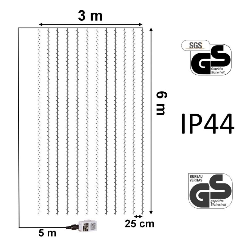 Svetelné dekoratívne osvetlenie vo forme LED závesu využijete pri slávnostnej výzdobe vnútorných aj vonkajších priestorov. 600 úsporných LED diód!