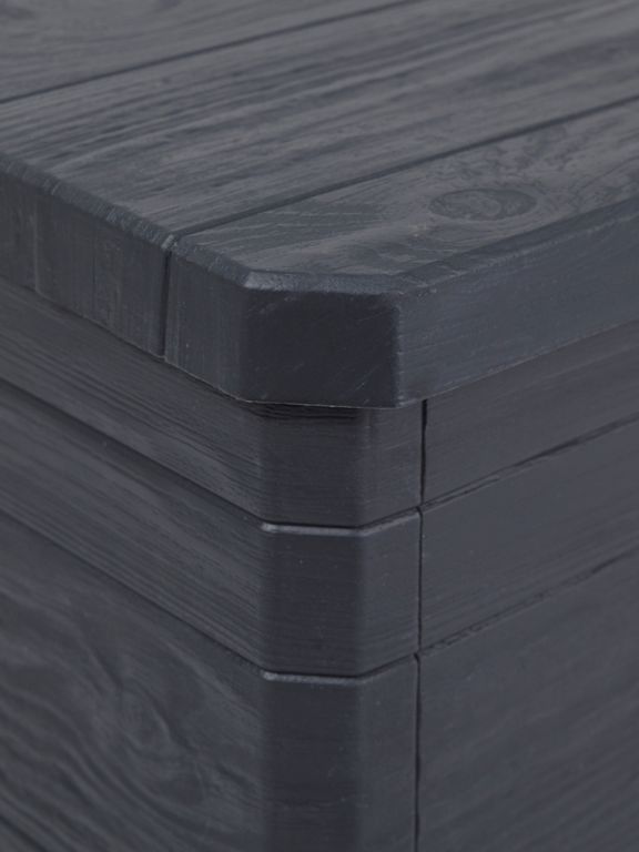 IMITÁCIA DREVENÉHO POVRCHU: Vďaka svojmu atraktívnemu dizajnu je táto krabica ideálna do každej záhrady alebo na terasu. Jej imitácia dreveného povrchu dodáva priestoru príjemný rustikálny šarm.