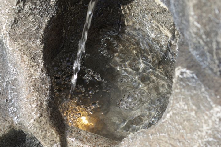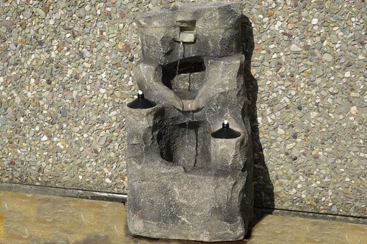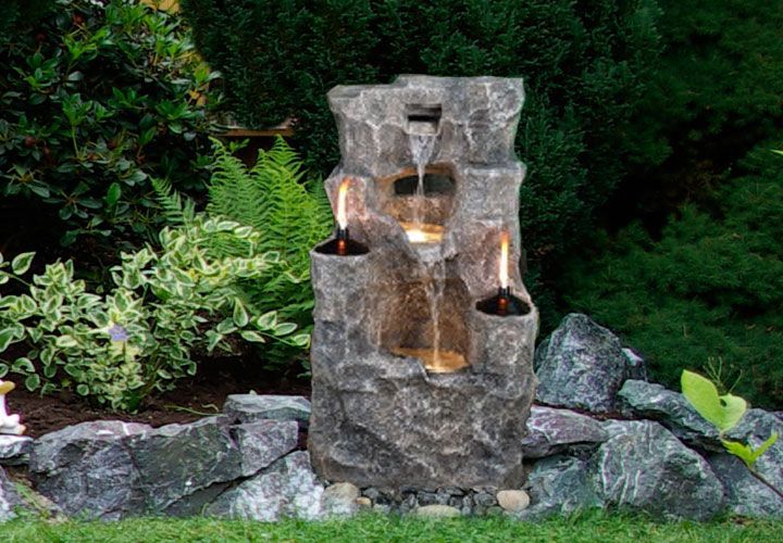 Záhradná fontána - fontána s osvetlením a olejovými lampami