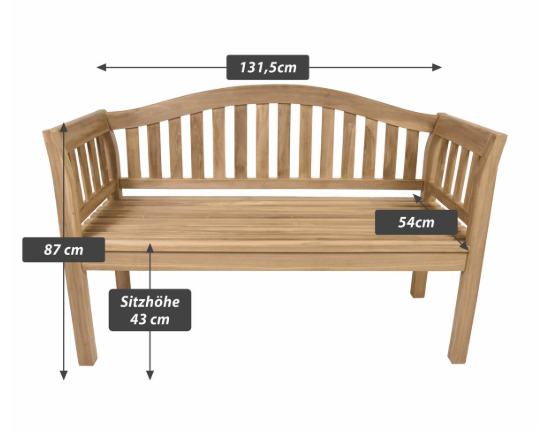 Vysoko kvalitná, elegantná a veľmi pohodlná drevená lavička z certifikovaného teakového dreva, parková a záhradná lavička, kompletne ručne vyrobená z teakového dreva pre dve osoby. Táto extravagantná, pohodlná a robustná lavička z masívneho dreva dodá vašej záhrade, zimnej záhrade, terase alebo balkónu prírodnú a relaxačnú atmosféru. Nabáda na posedenie, relaxáciu alebo na rýchly rozhovor s priateľmi, známymi a susedmi. Aby ste si zo svojej záhradnej lavičky užili dlhú dobu, odporúčame ju pravidelne ošetrovať teakovým olejom. Tým sa nielen predĺži životnosť vášho teakového nábytku, ale taktiež sa zvýrazní jeho kresba. Okrem zodpovedajúceho vankúša, zodpovedajúceho stolíka alebo teakového oleja pre starostlivosť o vašu záhradnú lavičku v našom obchode nájdete aj mnoho produktov pre dom a záhradu.
