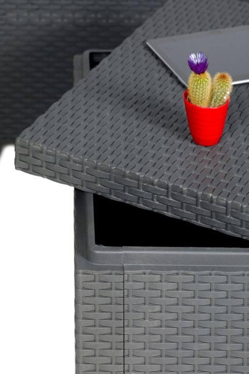 Vytvorte si oázu pokoja vo svojej záhrade s modernou súpravou DIANA 2 SEATERS v grafitovej farbe. Pohodlné kreslá s mäkkými vankúšmi a praktický stolík s úložným priestorom vám umožnia vychutnať si chvíle pohody na čerstvom vzduchu, či už pri rannej káve alebo večernom posedení vo dvojici.