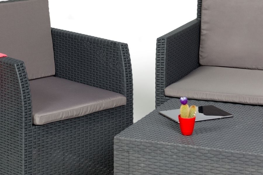 Predstavujeme vám záhradnú plastovú súpravu DIANA 2 SEATERS v elegantnom grafitovom vyhotovení.