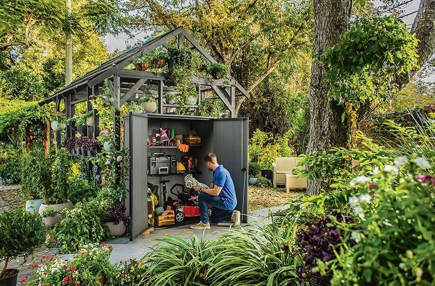 Vytvorte si poriadok a štýlový priestor na záhrade s touto skrinkou.