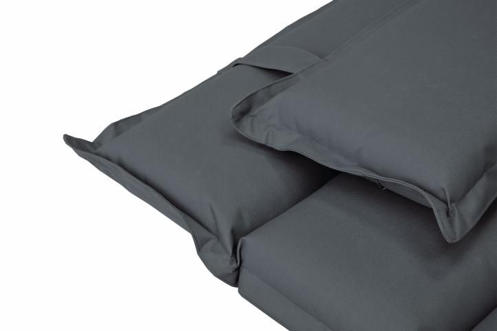 Kvalitná podložka na lehátko s 11 segmentmi vo veľmi dobrej silnej kvalite s extra vankúšom, nenáročná na údržbu. Vonkajší materiál podložky je silnejší a robustný, vnútorná strana je vybavená PE-vrstvou. Materiál zo začiatku pôsobí skôr neohybne, časom táto strnulosť trochu povolí.