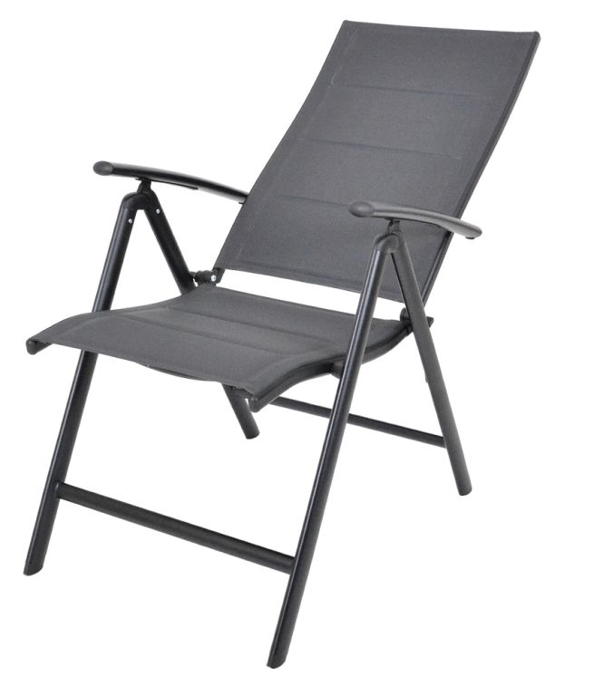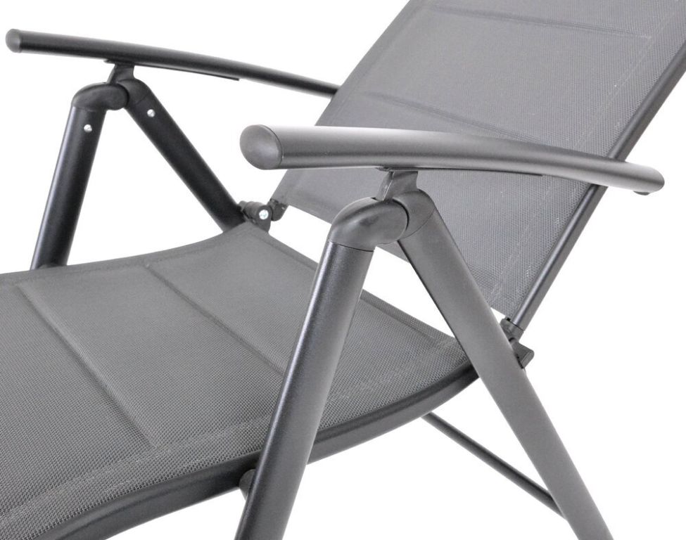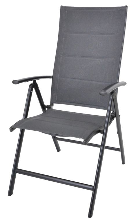 Stabilná hliníková konštrukcia je odolná voči korózii a poveternostným vplyvom. Textília 2x1 s penovou výplňou je príjemná na dotyk a ľahko sa udržiava. Kreslo má nosnosť 120 kg a vďaka skladaciemu prevedeniu šetrí miesto počas uskladnenia.