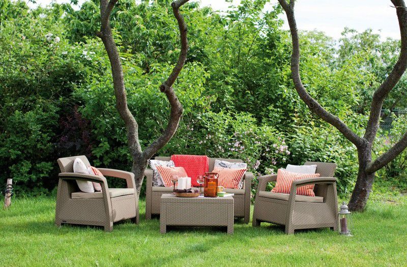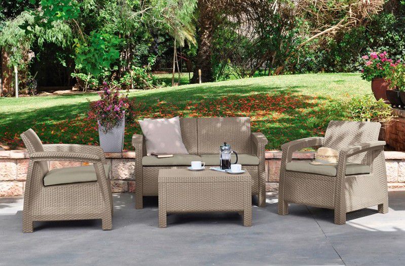 Souprava Corfu je pohodlné a moderní posezení jak ven, tak do interiéru. Souprava je vyrobena z lisovaného plastu v imitaci plochého ratanu. Set je doplněn o polstrování, které zajistí ještě větší pohodlí. Tato souprava patří k nejprodávanějším v této kategorii. Skládá se ze dvou křesílek, pohovky a stolku. Jednoduchá montáž i údržba.
