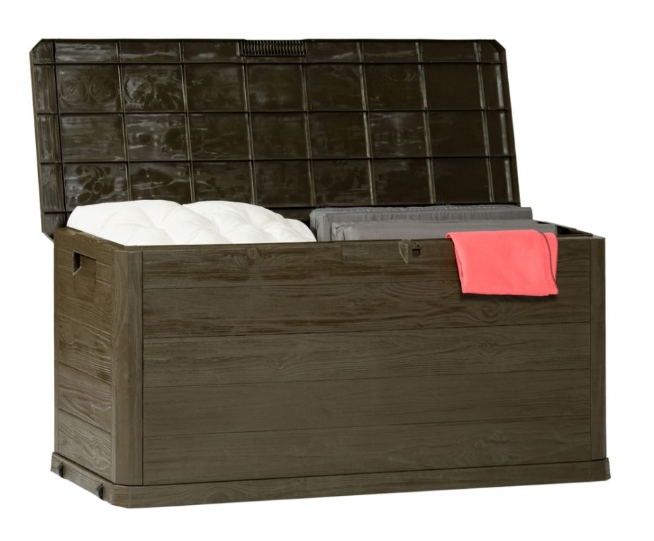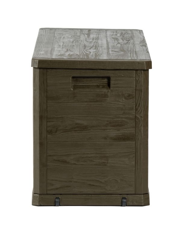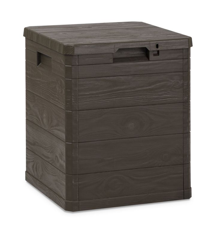 Užívajte si poriadok a krásu vo vašej záhrade vďaka tomuto boxu s imitáciou dreva. Všetko potrebné uložíte bezpečne a štýlovo. Objem 280 litrov poskytuje dostatok priestoru na vankúše, náradie aj hračky.